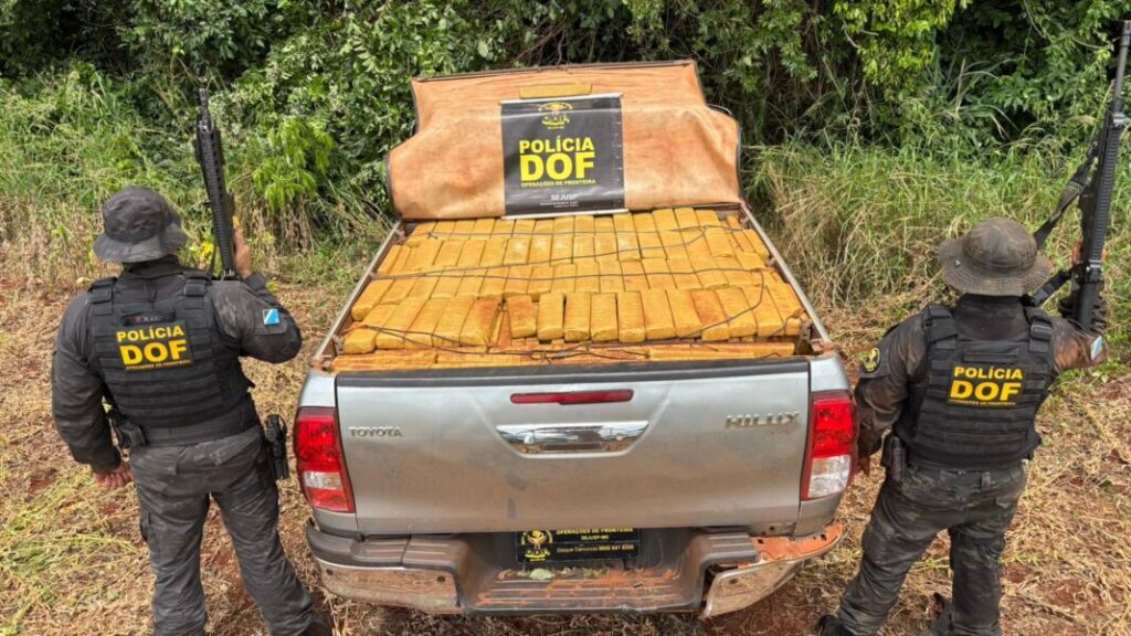 Neste cenário, os militares averiguaram o veículo e encontraram aproximadamente 2 mil tabletes de maconha. Ao checarem os sinais identificadores do veículo, os militares constataram que as placas eram falsas e que a caminhonete havia sido furtada em Amambai, em 2024.